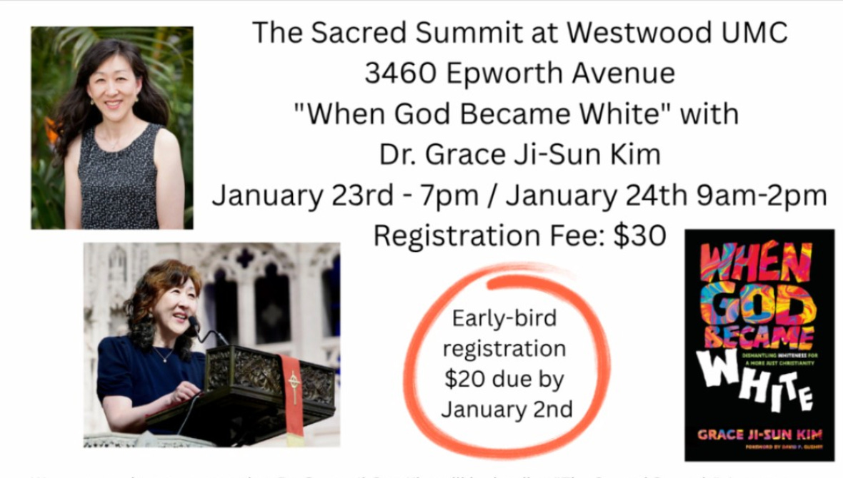 3.Join me on Jan 23rd-24th, Westwood United Methodist Church, for a “Sacred Summit.” All registered will receive a free copy of When God Became White and lunch is also included. Register here.