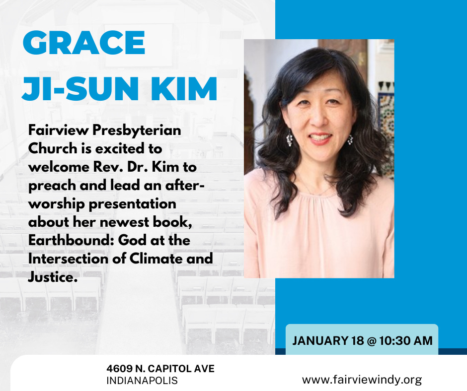 I will be preaching at Fairview Presbyterian Church, Indianapolis, on January 18th and will lead the Adult Forum on Earthbound. Please join me.